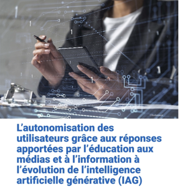 Note politique publiée par l’UNESCO (2024), dont l’auteure est Divina Frau Meigs professeure de sociologie des médias et des TIC à l’Université Sorbonne Nouvelle. L’objectif est de montrer comment les parties prenantes peuvent traiter les IAG sous l’angle de l’EMI afin de limiter les risques et pour saisir les opportunités que ces IAG représentent dans les écosystèmes du numérique.