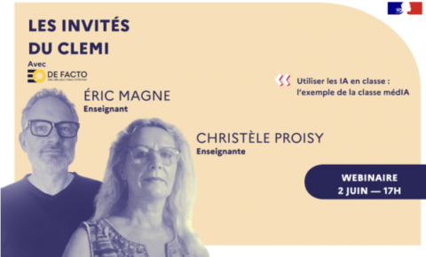 Le CLEMI national élargit et renforce son offre de formation en proposant un cycle de webinaires thématiques. Une à deux fois par mois, un expert est invité à venir échanger sur un sujet en lien avec les enjeux actuels de l’information et des médias . L’objectif est de proposer l’éclairage de professionnels et des pistes pédagogiques pour nourrir des projets et des actions en EMI en classe.